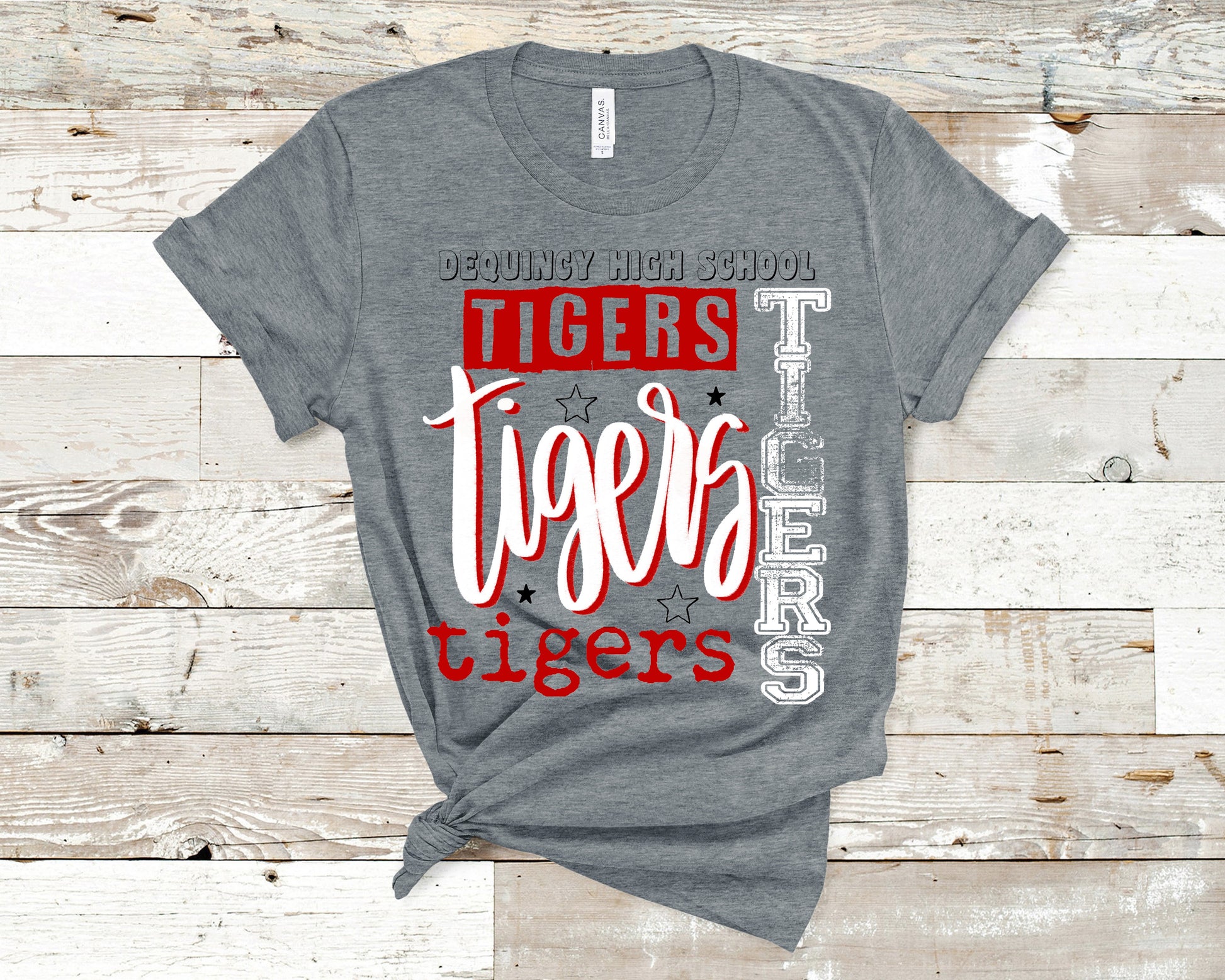 Shown on deep heather but you can specify an alternate shirt color in the cart notes section
