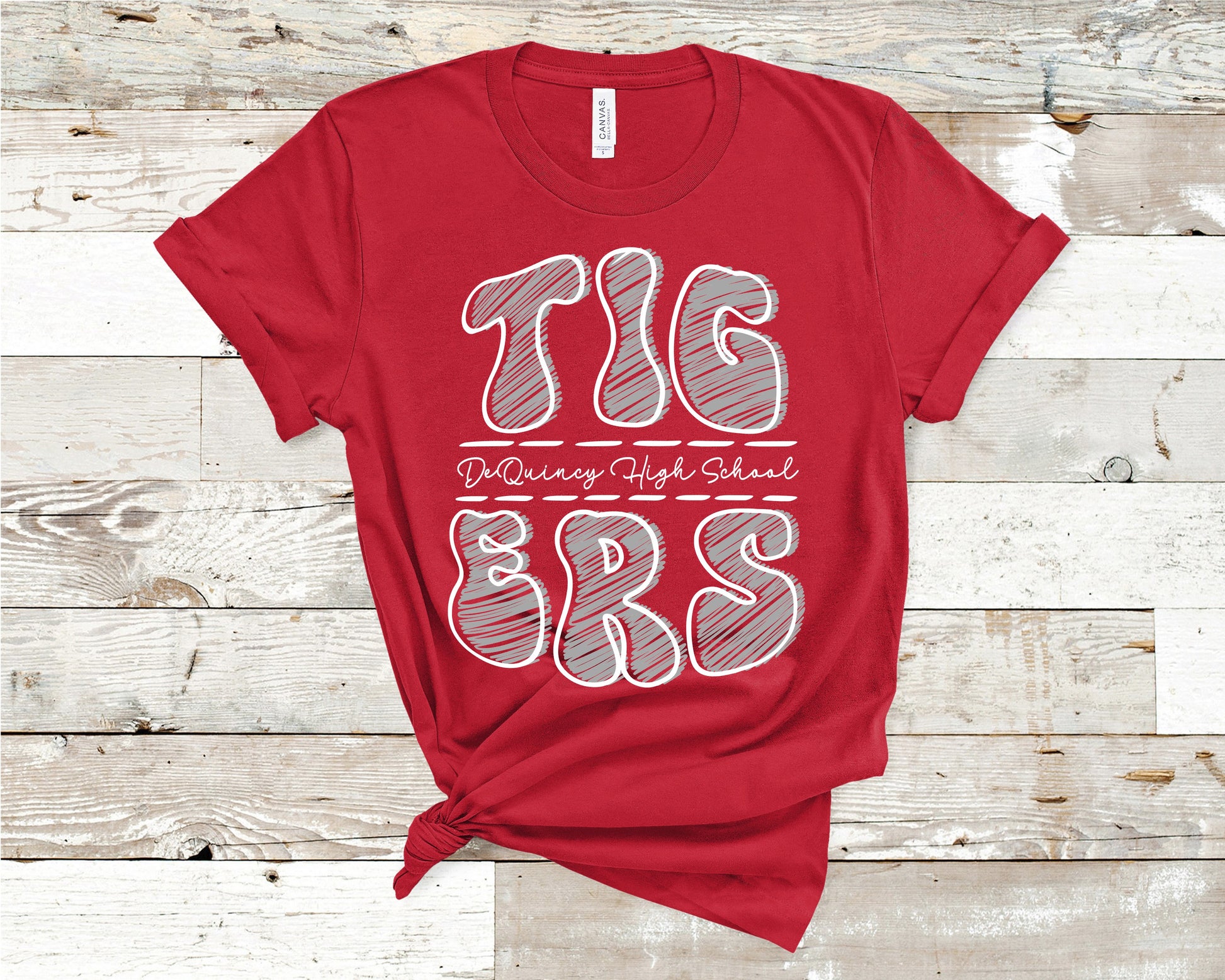 Shown on red but you can specify an alternate shirt color in the cart notes section