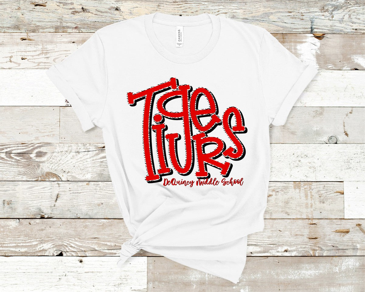 Shown on white but you can specify an alternate shirt color in the cart notes section